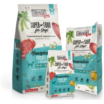MAC’s PUPPY är speciellt utvecklad för valpar och växande hundar. Den är skräddarsydd för valpars och unga hundars behov. Kombinationen av hög kötthalt, frukt och grönsaker säkerställer en bra ämnesomsättning. Glukosamin och kondroitin i synnerhet stöder en sund utveckling av leder och ben. MAC’S PUPPY är en super premiumprodukt som har tagit naturen som förebild.